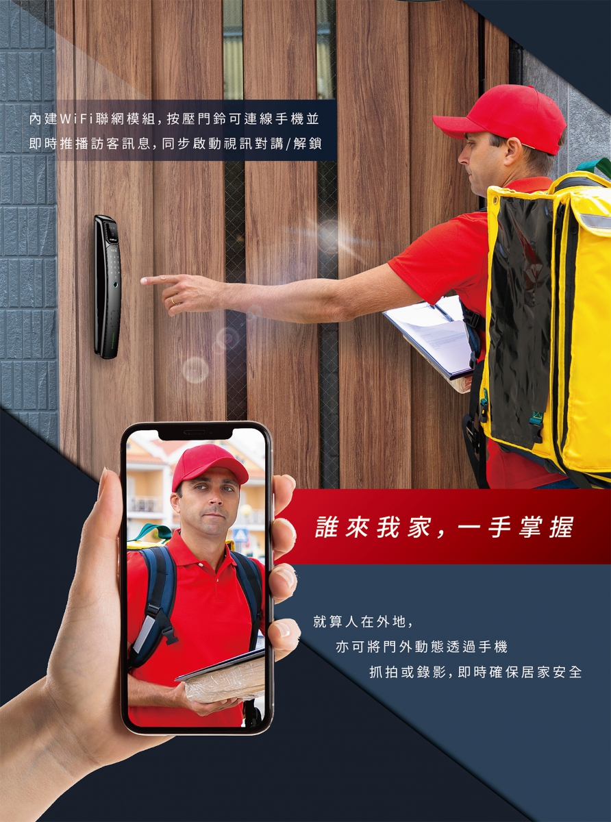 開門方式 : 人臉辨識/手機APP/指紋/卡片/密碼/NFC解鎖/鑰匙/臨時密碼/Wifi
